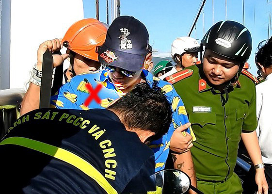 Nam thanh niên “sống ảo” (dấu x) trèo lên tận đỉnh tháp cầu Thuận Phước, Đà Nẵng được lực lượng chức năng đưa xuống an toàn