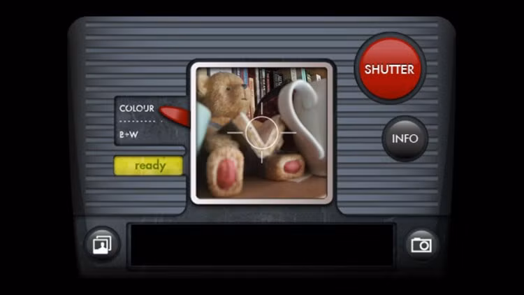 Nếu bạn nhấn biểu tượng chiếc máy ảnh của ứng dụng, bạn có thể lướt qua những tuỳ chọn này. Bạn có thể thử dùng tuỳ chọn Xoloroid và Fudgecan. Ứng dụng không có các bộ lọc nhưng bạn có thể chọn chụp ảnh màu hoặc ảnh đen trắng với các tuỳ chọn camera.
