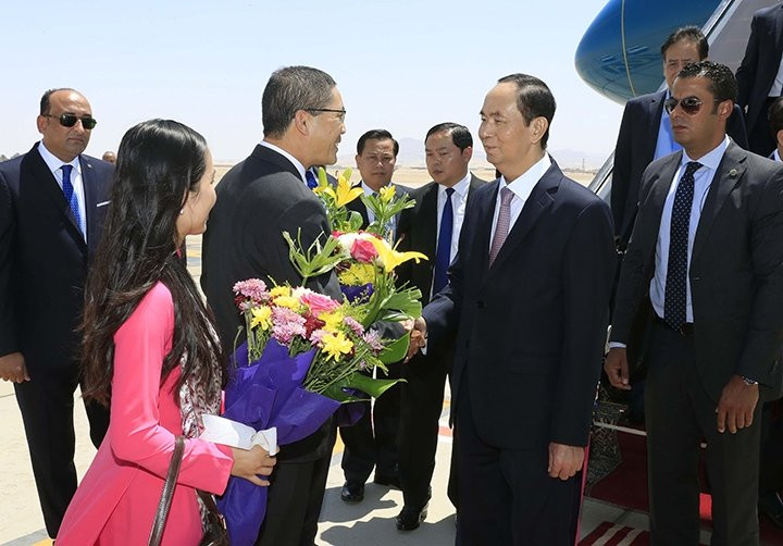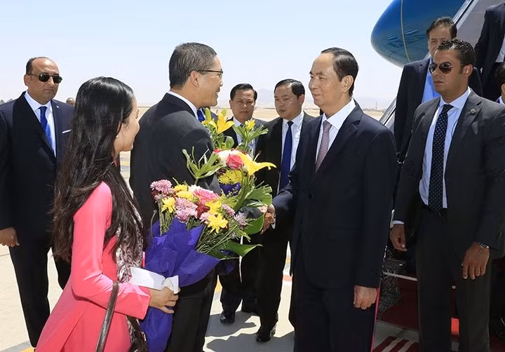 Theo TTXVN, vào lúc 12.30 chiều 25/8 theo giờ địa phương (17.30 cùng ngày theo giờ Việt Nam), Chủ tịch nước Trần Đại Quang và Phu nhân đã tới thành phố Luxor, bắt đầu chuyến thăm cấp Nhà nước đến Cộng hòa Arab Ai Cập từ ngày 25-29/8 theo lời mời của Tổng thống Ai Cập Abdel Fattah Al Sisi.