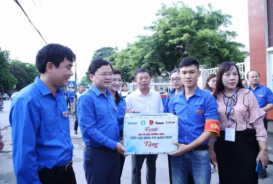 Sáng 7/7, ông Bùi Quang Huy, Ủy viên dự khuyết BCH Trung ương Đảng, Bí thư Thường trực BCH Trung ương Đoàn dẫn đầu đoàn công tác đến thăm, tặng quà, động viên đội hình tình nguyện Tiếp sức mùa thi tại điểm trường THPT Phạm Hồng Thái, THCS Ba Đình (Hà Nội).