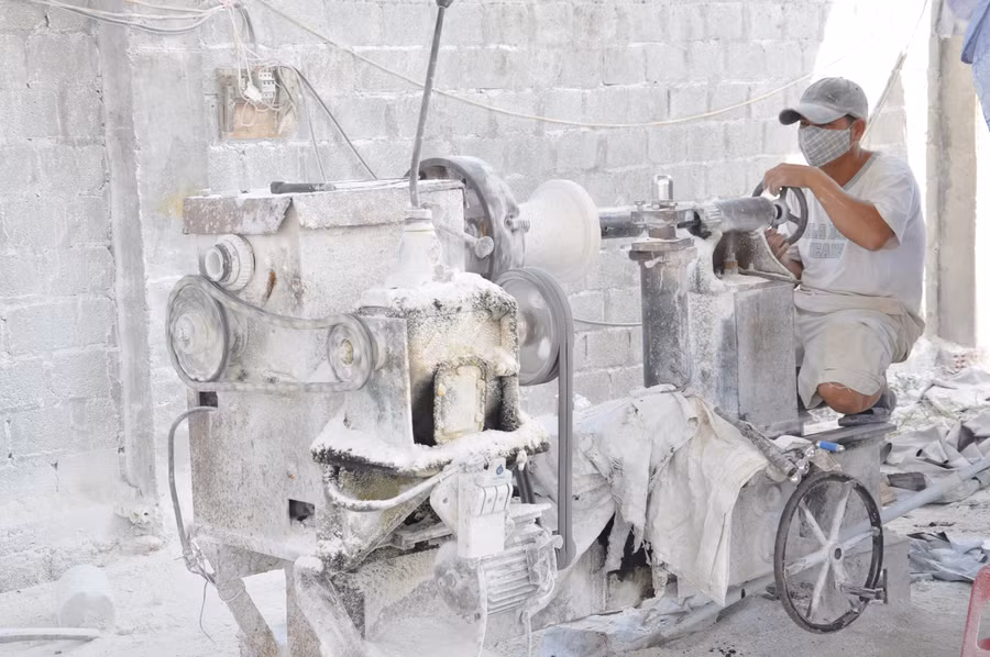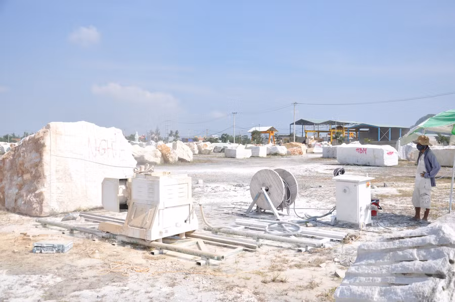 Đi dọc khu xưởng các cơ sở sản xuất đá mỹ nghệ, chúng tôi chứng kiến không khí làm việc, lao động của các thợ điêu khắc hết sức hăng say, khẩn trương. Tiếng đục, tiếng máy tạo nên một công trường sôi động. Trên các trực đường, xe cộ vào ra nhộn nhịp…như muốn nói lên một điều: Làng đá mỹ nghệ Non Nước đang ăn nên làm ra!