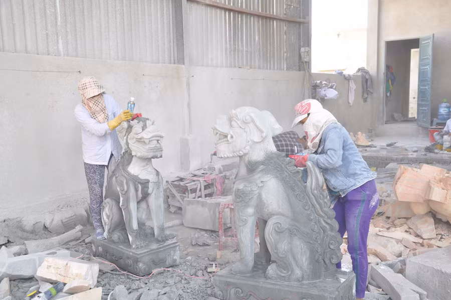 Tuy nhiên, không phải vì thế mà tình hình sản xuất, làm ăn của cơ sở kém đi mà vẫn tiếp tục được duy trì. Mỗi ngày có hàng chục công nhân lao động, sản xuất trong cơ sở của mình. Công ăn việc làm của công nhân vẫn ổn định, thu nhập khá. Anh Trần Minh Tuấn – một thợ điêu khắc đá cho hay: So với thời gian đầu chuyển về làng đá mỹ nghệ Non Nước mới thì hiện nay công việc gần như đã ổn định, có những thời điểm làm không hết việc.