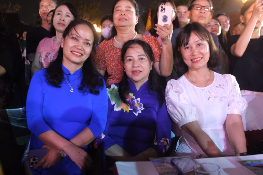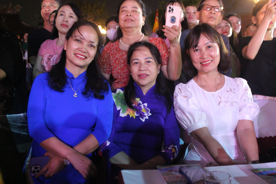 | Đêm thơ nhạc "Thành Sen - Sức sống mới" còn thu hút sự chăm chú theo dõi của đông đảo nhân dân. |