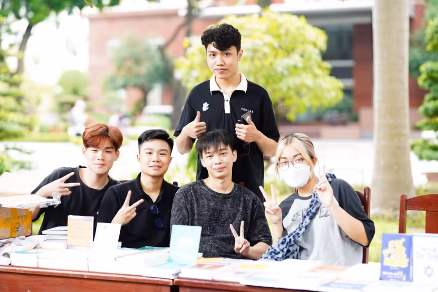 Gốc nhãn B6 - địa điểm check-in nổi tiếng của trường Báo là khu vực thứ hai mà Ban tổ chức lựa chọn làm gian hàng trưng bày và bán các đầu sách với nội dung thú vị, hấp dẫn với những phần quà dành cho những tâm hồn yêu sách, yêu xuất bản khi mua hàng hoặc chơi minigame.