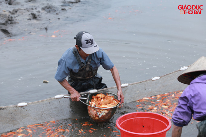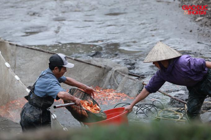 | Càng đến gần ngày 23 tháng Chạp, hàng trăm hộ dân ở làng Thủy Trầm lại tất bật xuống hút ao, thu hoạch cá để xuất đi bán phục vụ nhu cầu người dân. |