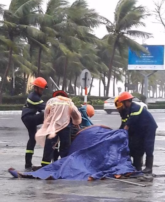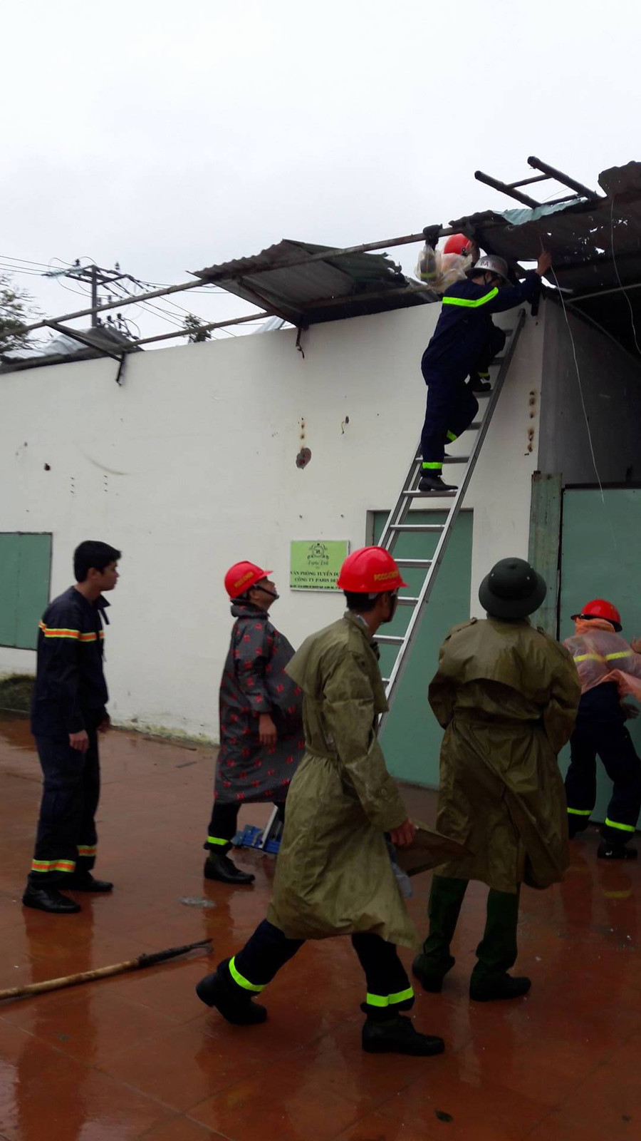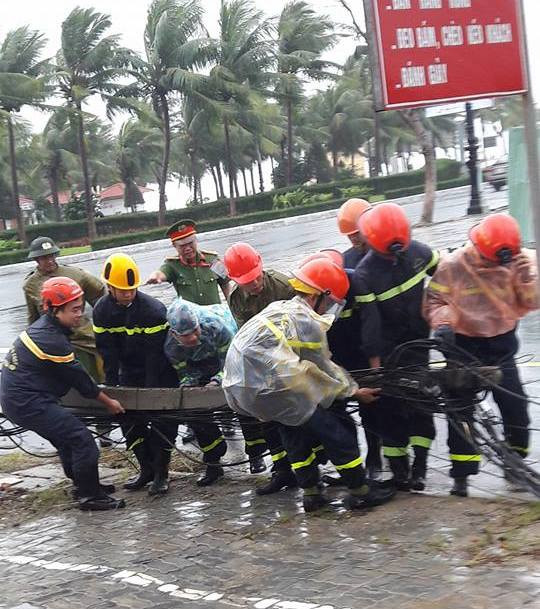 Trên các tuyế đường, khu vực dân sư, cán bộ, chiến sĩ, cùng người dân dầm mình trong mưa gió tháo dỡ, di dời những cây xanh, cột điện, tường rào bị gãy đổ; thu gom các bảng hiệu, pano bị trúc ngã; gia cố các mái nhà, cửa hiệu bị tốc mái…