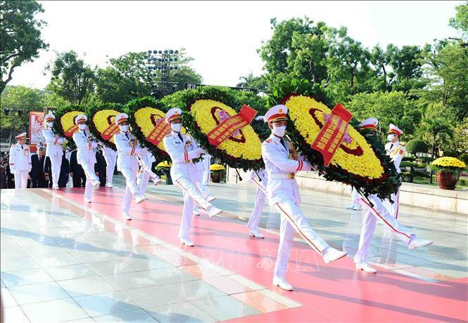 | Đoàn Lãnh đạo Đảng, Nhà nước đặt vòng hoa tại Đài tưởng niệm các Anh hùng liệt sỹ. |