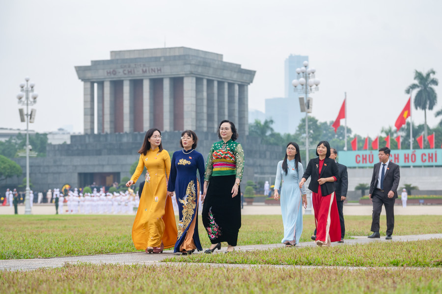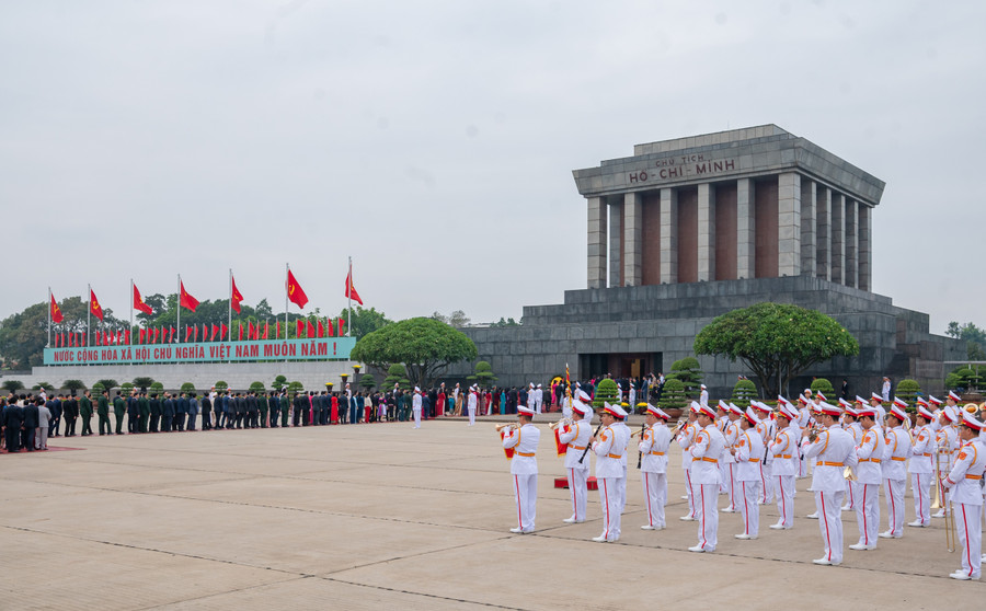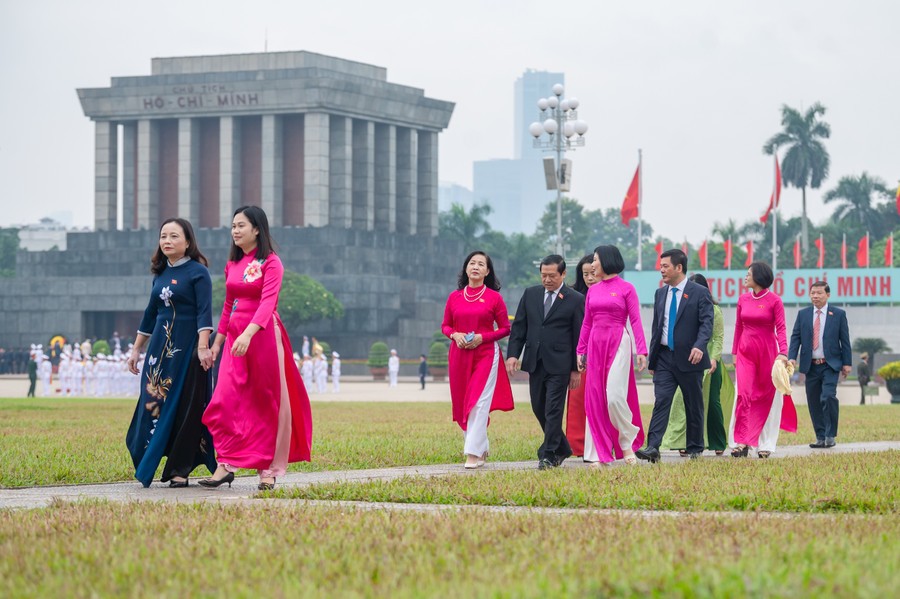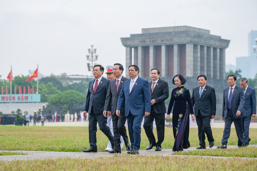 | Lãnh đạo Đảng, Nhà nước cùng các Đại biểu Quốc hội vào Lăng viếng Chủ tịch Hồ Chí Minh. |