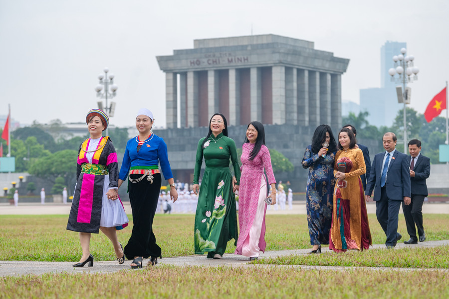 | Lãnh đạo Đảng, Nhà nước cùng các Đại biểu Quốc hội kính cẩn tỏ lòng biết ơn vô hạn, lòng thành kính tưởng nhớ công lao to lớn của Chủ tịch Hồ Chí Minh. |