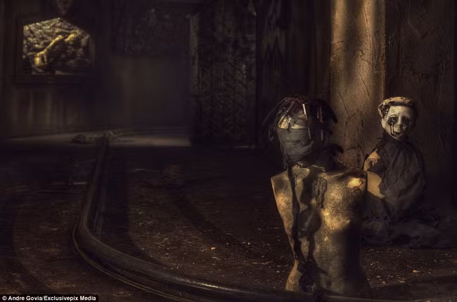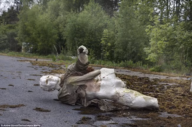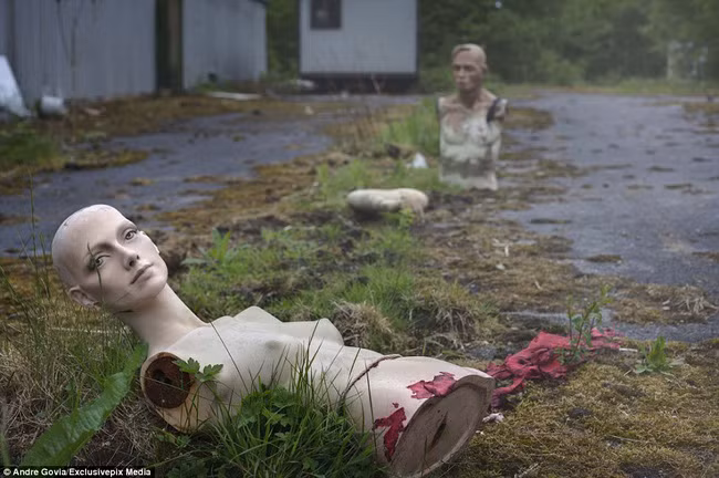 Xen kẽ giữa khung cảnh hoang tàn, đổ nát của khu vui chơi là xác những con ma-nơ-canh nằm chỏng chơ.