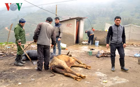 Những người dân địa phương cho biết, nguyên nhân khiến trâu chết hàng loạt một phần do hậu quả của đợt rét đậm đột ngột gây ra, một phần do đa số diện tích cỏ trồng cho trâu ăn bị chết sau đợt băng tuyết hồi tháng 1/2016, khiến trâu ăn phải “xót ruột” mà chết.