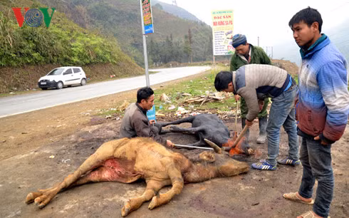 Dọc theo tuyến Quốc lộ 4D từ thành phố Lào Cai đi Sa Pa, trâu chết rét được bày bán la liệt dọc hai bên ven đường với giá thấp. Trong số đó, có những con non dưới 1 năm tuổi, thậm chí có cả trâu cày.