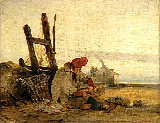 Vị khách đồng ý theo lão quay về túp lều ngay trong đêm tối. Lão đánh cá bày tỏ ý định muốn thết đãi người này và bắt đầu nhóm lửa để nướng cá. Trong khi chuẩn bị bữa tối, lão vừa hát vừa cười, tâm trạng vô cùng hưng phấn.