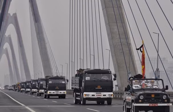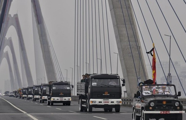 | Đoàn xe đưa linh cữu nguyên Chủ tịch nước Lê Đức Anh về qua nhà riêng tại phố Hoàng Diệu (Hà Nội). |