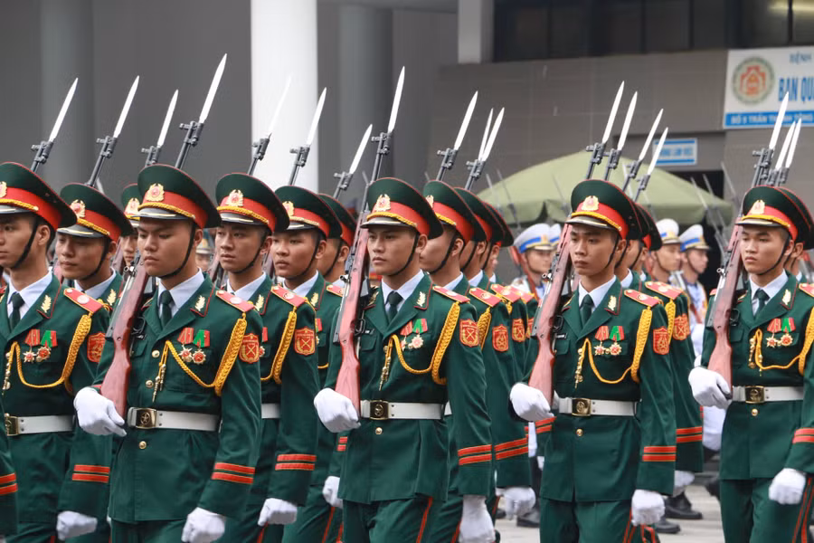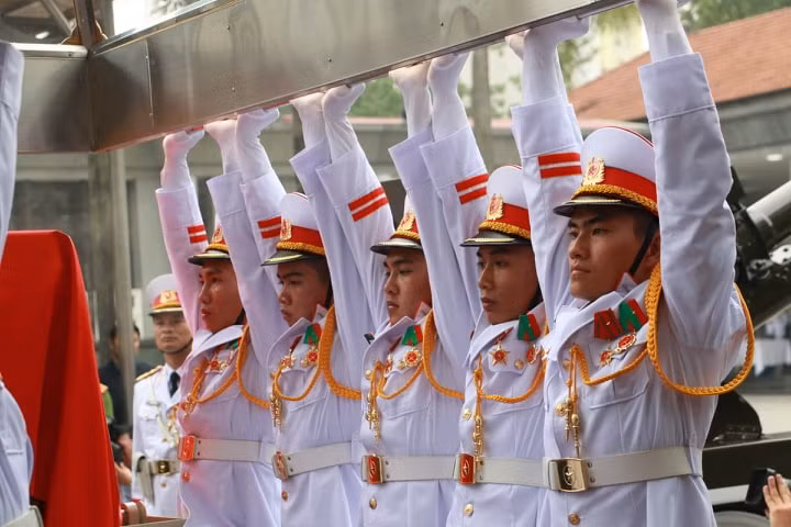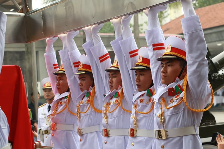 | Đội nghi lễ vào vị trí chuẩn bị Lễ di quan Đại tướng Lê Đức Anh. |