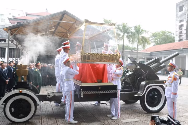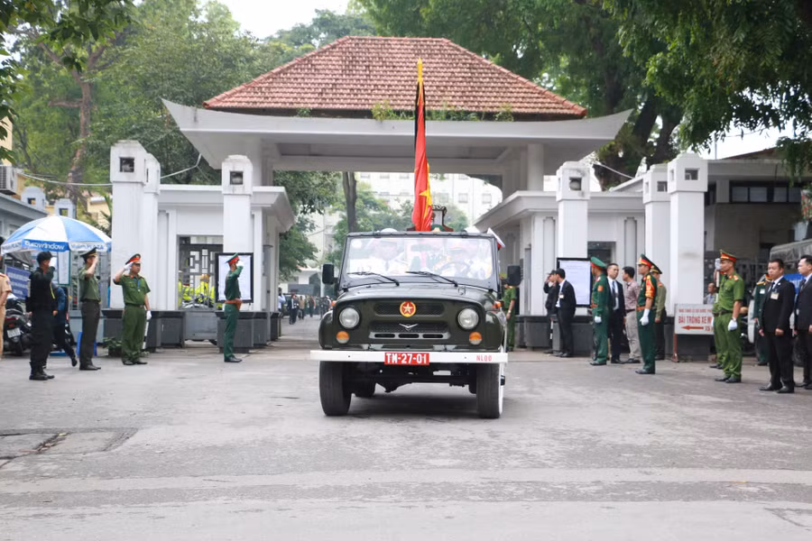 | Linh xa đưa linh cữu Đại tướng Lê Đức Anh rời Nhà tang lễ Quốc gia. |