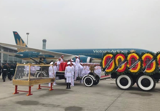 Hồi 14h40 phút, linh cữu nguyên Chủ tịch nước, Đại tướng Lê Đức Anh đã về đến sân bay Tân Sơn Nhất.