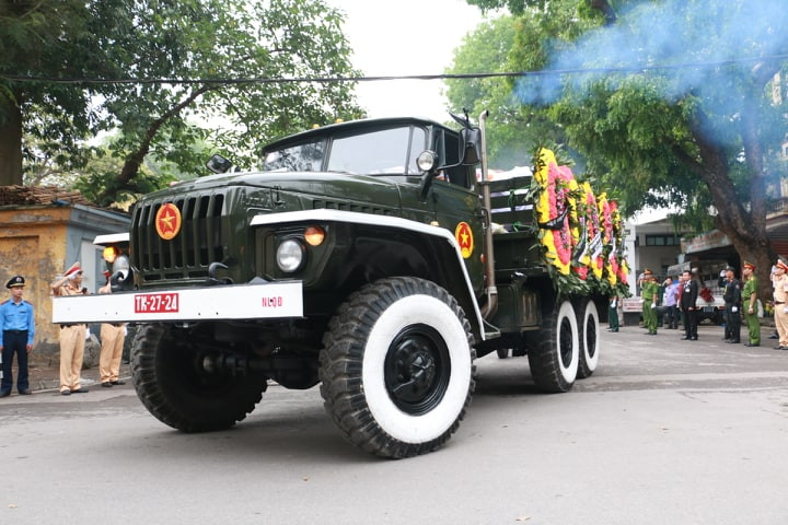 | Di ảnh của Đại tướng Lê Đức Anh được chuyển ra xe tang. |
