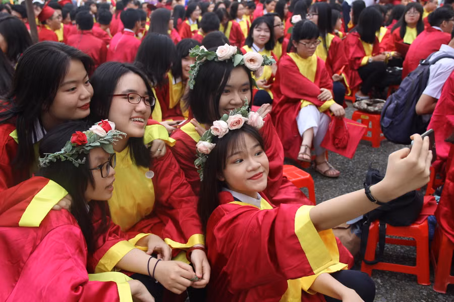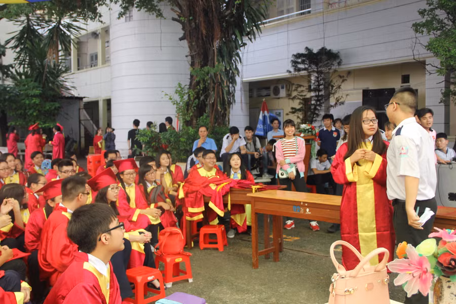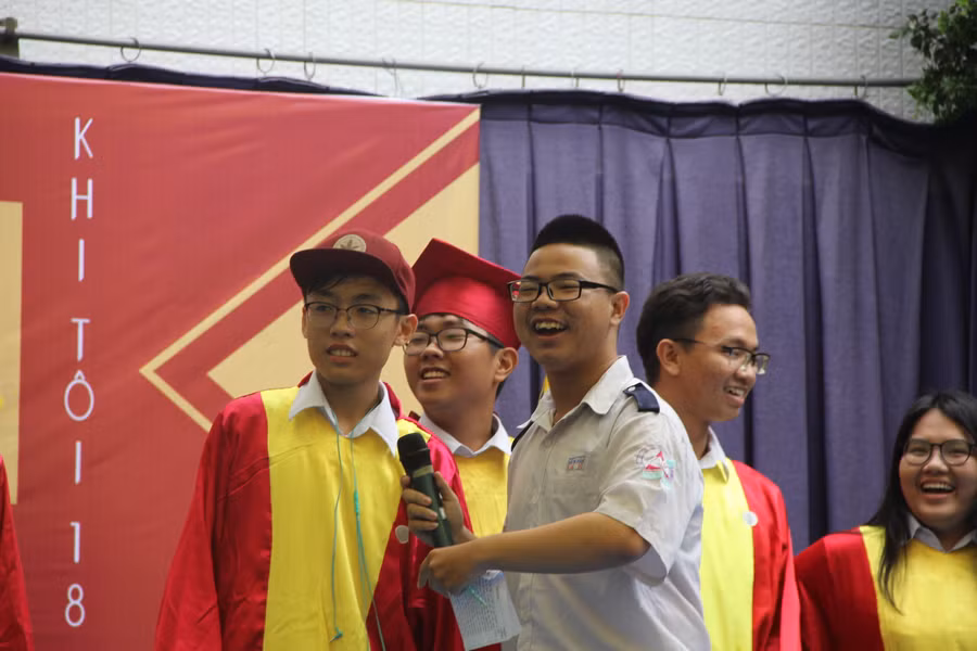 Học trò cuối cấp cùng nhau tạo nên những tiếng cười với các tiểu phẩm, bài hát vui nhộn, trò chơi thú vị và cả thổi nến đánh dấu tuổi 18 của mình hay cùng bạn bè gia đình chụp hình ghi lại những khoảnh khắc cho ngày đặc biệt. Và rồi các cô cậu học trò lắng lại với những gửi gắm đầy xúc động cô Vũ Thị Ngọc Dung, Hiệu trưởng nhà trường:
