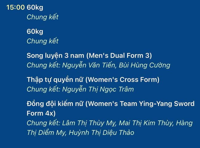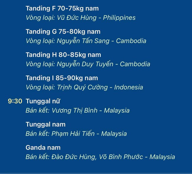 Lịch thi đấu của Đoàn Thể thao Việt Nam hôm nay 7/5 tại SEA Games 32