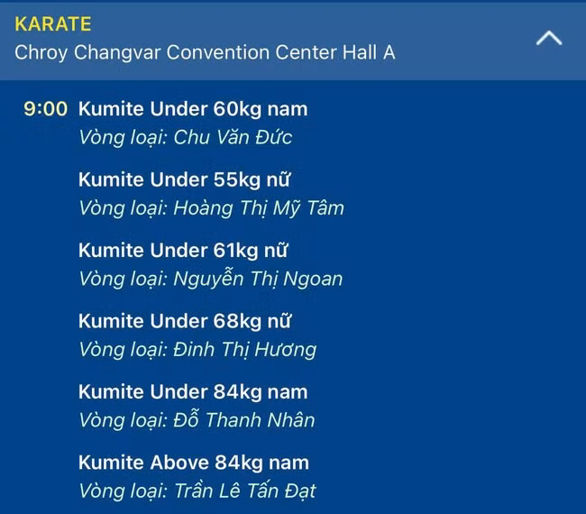 | Karatedo đã mở hàng cho những tấm Huy chương Vàng của Việt Nam ở ngày thi đấu chính thức đầu tiên tại SEA Games 32. |