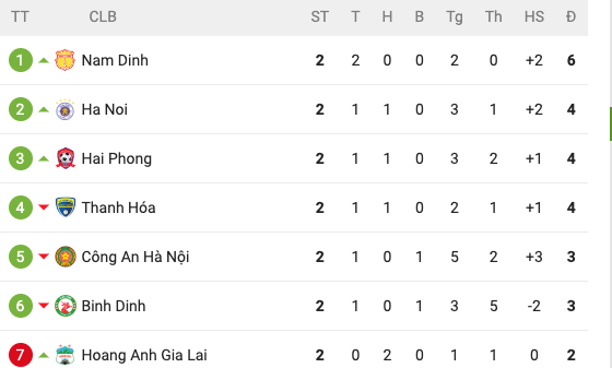 |   Bảng xếp hạng sau vòng 2 V.League 2023.  |