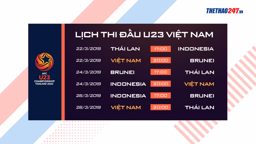 | 26/3 | 17h00 | Indonesia - Brunei | Thethao247.vn |
