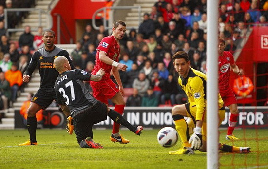 Liverpool hành quân tới sân St. Mary để tìm kiếm ba điểm từ đội chủ nhà. Nhưng Southampton đã cho thấy họ không phải đối thủ dễ bị bắt nạt khi chọc thủng lưới Lữ đoàn đỏ từ phút thứ 6. Tận dụng sự lỏng lẻo của hàng phòng thủ đối phương, Morgan Schneiderlin đã có pha lập công để đưa Southampton vượt lên dẫn trước.