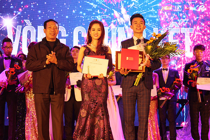 Cặp đôi trình diễn catwalk ấn tượng nhất và cặp đôi sinh viên khoa Kế toán được yêu thích nhất: Đoàn Quỳnh Nga - Nguyễn Tiến Đạt.