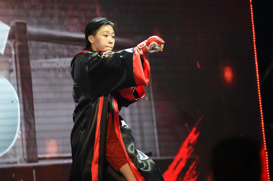 Các đòn đánh striking uy lực, dồn ép đối thủ toàn diện giúp Nguyễn Thị Uyển Nhi từ Võ đường Bùi Duy Vinh thắng áp đảo Lê Thị Thúy Vy với tỉ số (30-27, 29-28, 30-27).