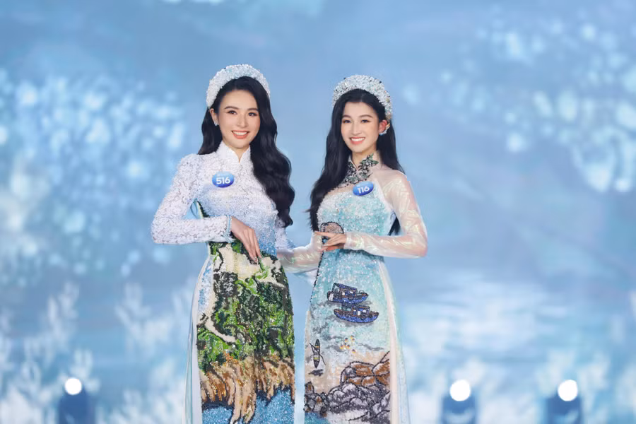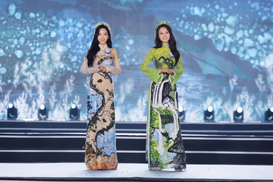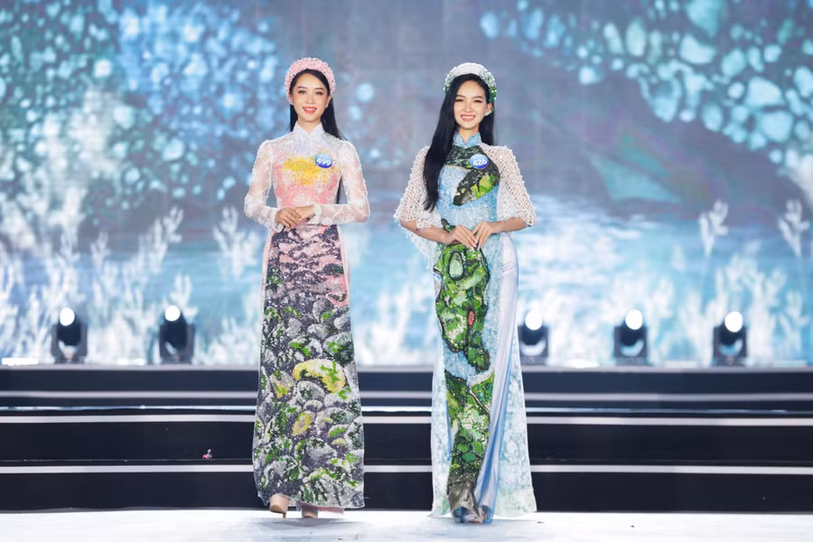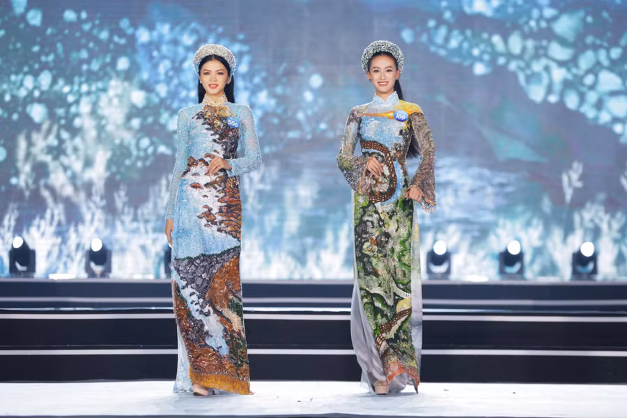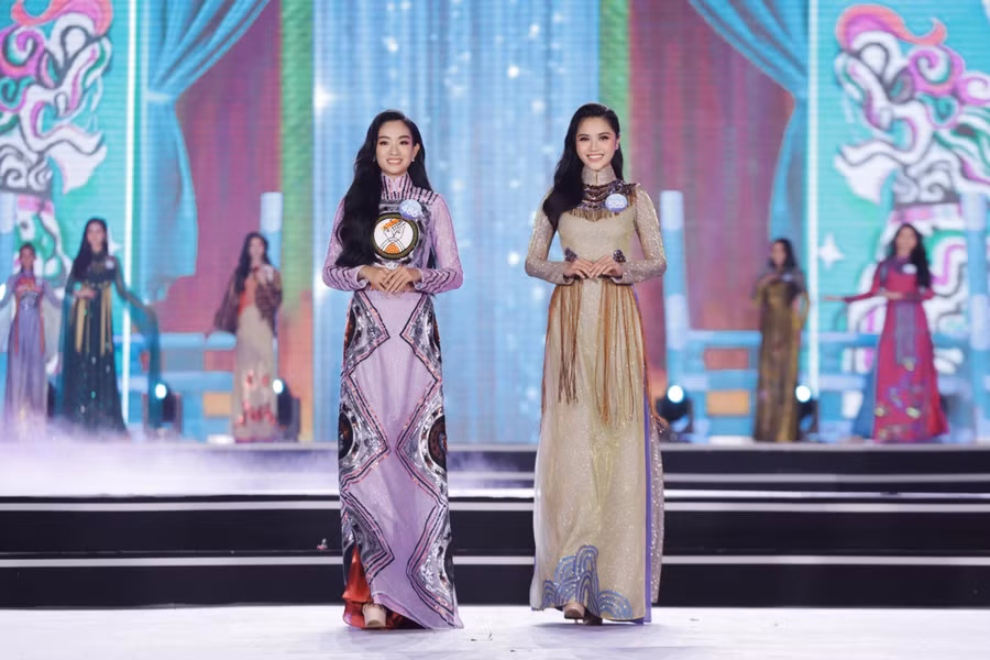 Với vẻ đẹp dịu dàng, mềm mại, các thí sinh đã xuất sắc thể hiện tinh thần, nét đẹp của từng bộ sưu tập. Kết thúc phần thi áo dài, Ban giám khảo đã công bố Top 5 Người đẹp nhân ái và lựa chọn ra Top 20 để đi tiếp vào vòng trong.