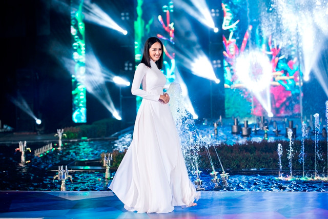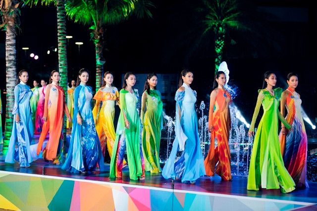 Trên sàn runway được Tổng đạo diễn Hoàng Nhật Nam dàn dựng quanh hệ thống đài phun nước tại phố đi bộ Đà Nẵng, các cô gái của Miss World Việt Nam đã có phần trình diễn cực kì ấn tượng.