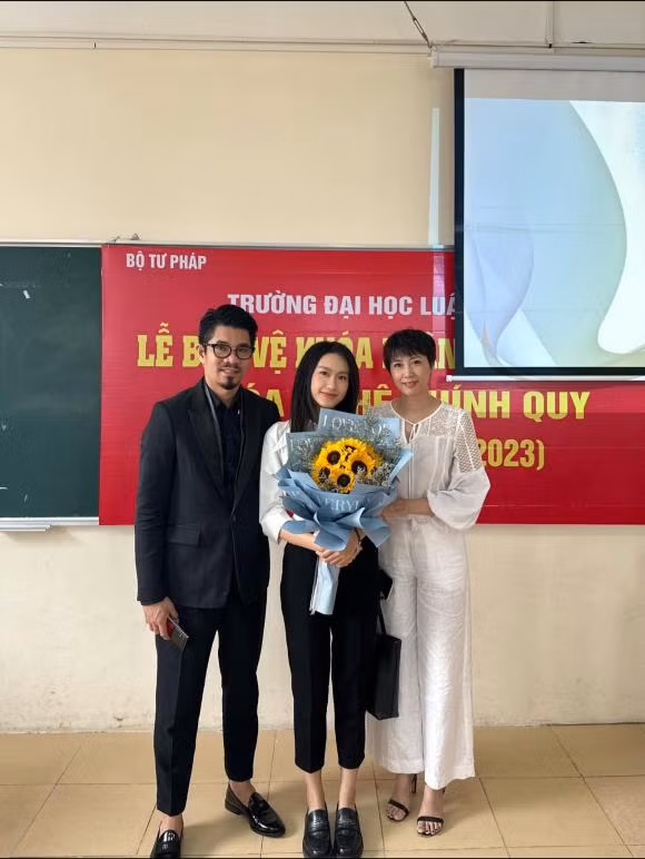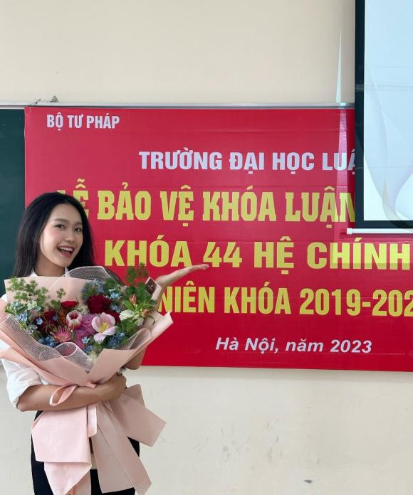 Doãn Hải My chia sẻ: "Một cột mốc đáng nhớ. Vậy là hôm nay My đã hoàn thành buổi Bảo vệ khoá luận tốt nghiệp! Em xin đặc biệt gửi lời cảm ơn tới cô... trong suốt thời gian qua đã chỉ bảo và giúp đỡ em hoàn thành khoá luận thành công và đạt được số điểm trọn vẹn ạ. Em xin cảm ơn các thầy cô Viện Luật so sánh đã đồng hành cùng chúng em trong suốt buổi bảo vệ ngày hôm nay và tạo điều kiện để chúng em có thể hoàn thành xuất sắc buổi bảo vệ khoá luận ạ.