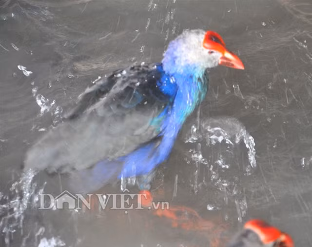 ‘Chim trích cồ trưởng thành có màu xanh dương và xanh lá cây ở phần ức và bụng; chân, mỏ và trên đầu có màu đỏ tươi rất đẹp. Loài chim này có khả năng bảo vệ lãnh thổ rất cao, từ lâu người ta đã nuôi giống chim này để giữ nhà’ – anh Giáp tiết lộ.