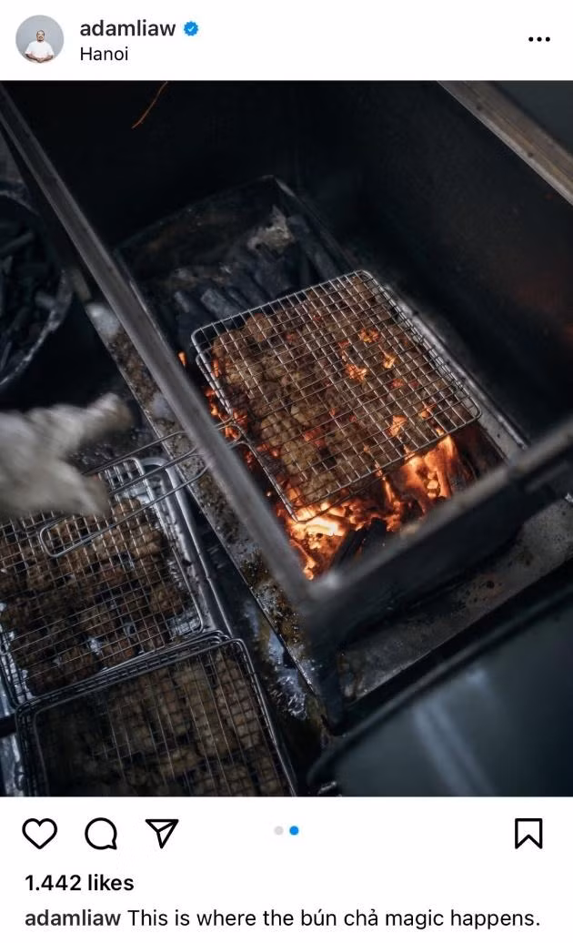 | Adam Liaw thích thú chia sẻ cảm nhận về món bún chả yêu thích trên trang cá nhân khi có dịp đến Việt Nam năm 2019 |