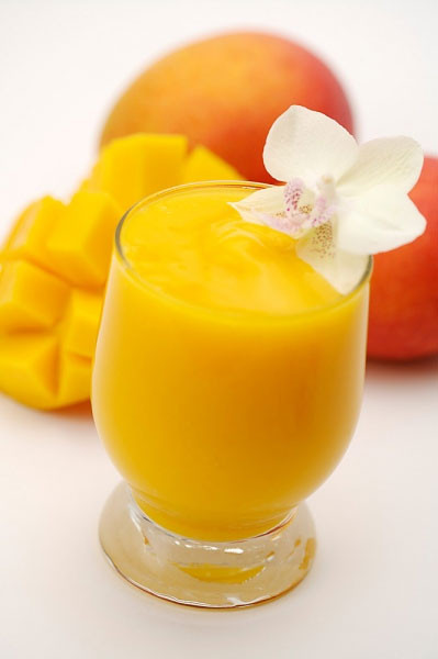 - Cho cà chua, xoài, sữa, đường vào máy xay sinh tố xay nhuyễn, có thể thêm đá tùy thích.