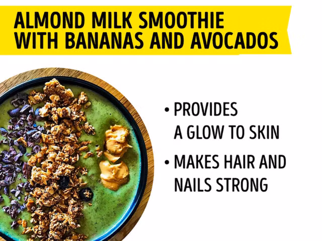 Sữa hạnh nhân chứa vitamin A, D và E có thể giữ cho làn da của bạn khỏe mạnh và trẻ trung hơn. Nó cũng giàu canxi và protein giúp móng tay và tóc chắc khỏe và dẻo dai. Bơ với chất béo không bão hòa cung cấp độ sáng cho làn da trong khi chuối chứa vitamin A, B và E, tất cả đều tuyệt vời cho làn da của bạn.