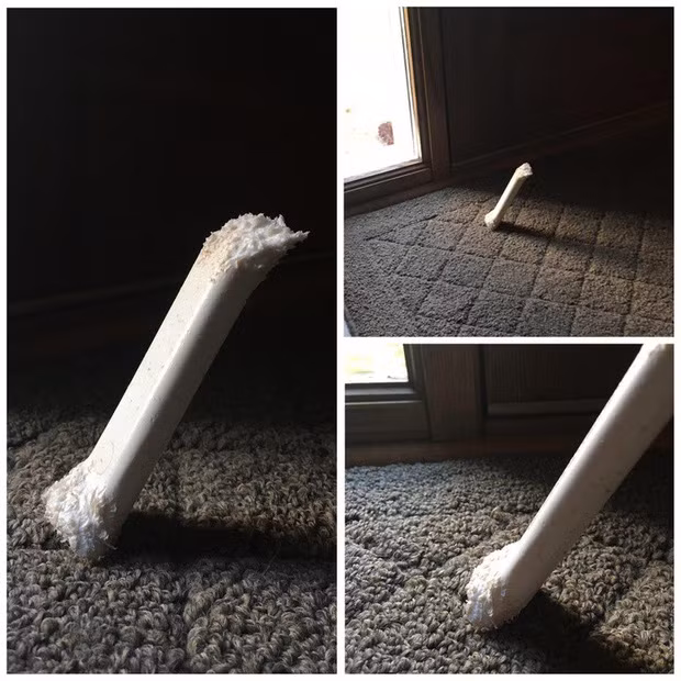 10. Người chủ cho biết thú cưng của mình đã gặm khúc xương theo cách thật đặc biệt mới kéo được nó đứng lên như thế này.