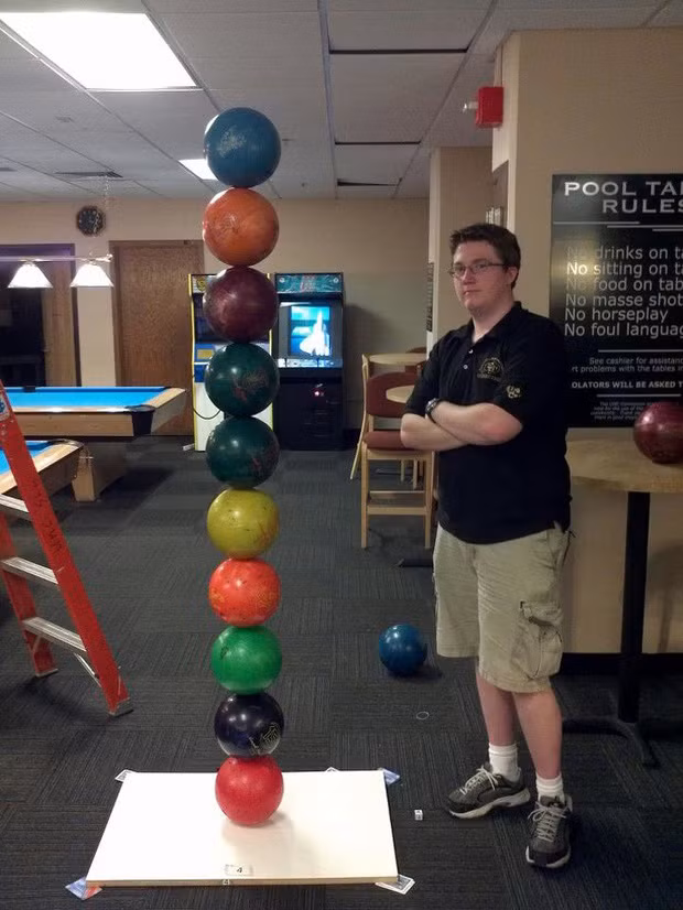 3. Nghệ thuật xếp bóng bowling đỉnh cao là đây, xem cho biết thôi chứ đừng thử nhé!