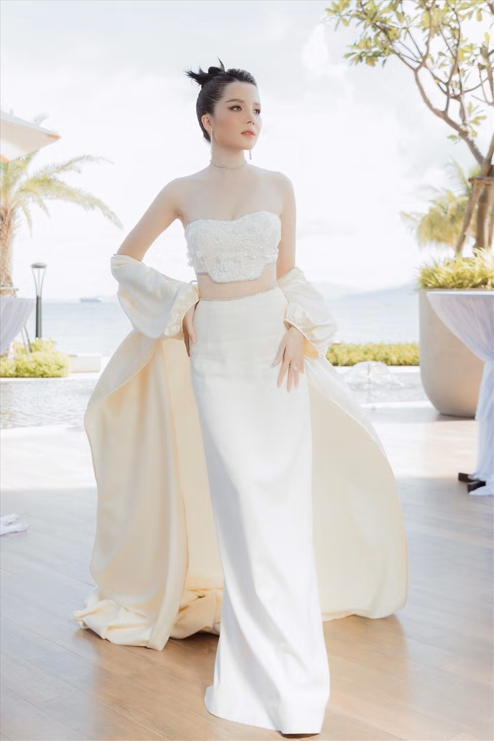 Hoa hậu Đỗ Thị Hà diện bộ váy trắng cúp ngực khoe vai trần quyến rũ và đôi chân dài 1m1 sexy