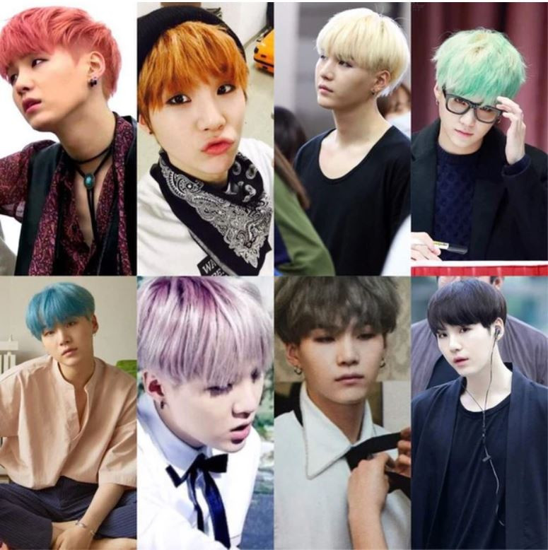 Nam ca sĩ sở hữu làn da trắng và khuôn mặt nhỏ nhắn. Kể từ những ngày đầu ra mắt, màu tóc đặc biệt của Suga đã trở thành đồng nghĩa với tính cách của anh ấy, khiến người hâm mộ háo hức mong đợi sự thay đổi mái tóc tiếp theo của anh ấy.