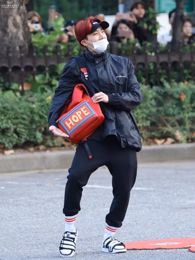J-hope vốn là thành viên có gu thời trang độc đáo, lạ mắt nhất nhóm. Anh có những cách mix đồ khá thú vị như đi tất với sandals, đeo túi hình ngộ nghĩnh, phối các món đồ tưởng chừng không liên quan nhưng lại trông "chất ngầu".