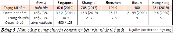 * Cơ chế này đã tạo nên các siêu tập đoàn vận tải biển đầy quyền lực. Bất chấp đại dịch Covid-19 vận tải biển bằng công-te-nơ tiếp tục phát triển nhanh và tập trung (số liệu trong Bảng 3 và Bảng 4).