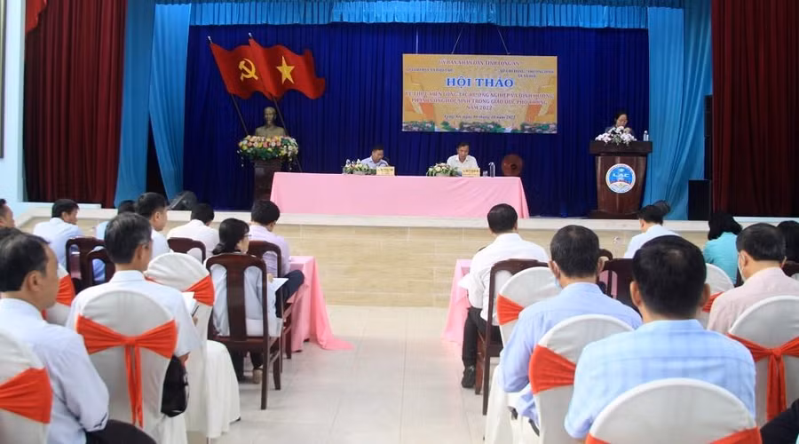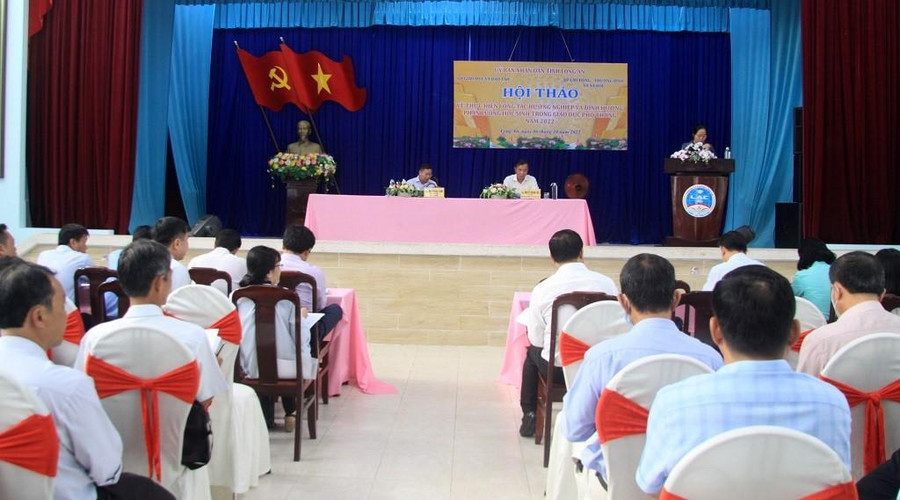 Ngày 06/10 vừa qua, Sở Giáo dục và Đào tạo tỉnh Long An phối hợp Sở Lao động – Thương binh và Xã hội tỉnh tổ chức Hội thảo về thực hiện công tác hướng nghiệp và định hướng phân luồng học sinh trong giáo dục phổ thông năm 2022 với sự tham gia của khoảng 250 đại biểu. Giám đốc Sở Giáo dục và Đào tạo – Nguyễn Quang Thái cùng Phó Giám đốc Sở Lao động Thương binh và Xã hội tỉnh - Nguyễn Đại Tánh chủ trì hội nghị.