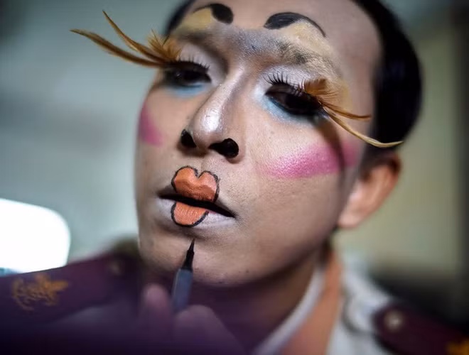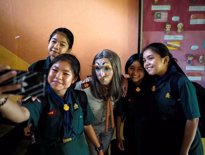Với màn trang điểm độc lạ, thầy giáo thu hút sự chú ý của học trò hơn.