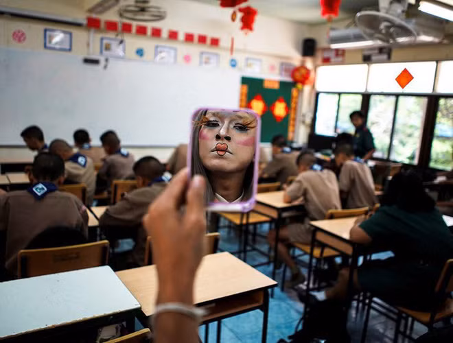 Trong khi cộng đồng mạng đang vô cùng bất bình về vụ việc các nữ sinh trang điểm đi học thì bị thầy giáo tạt nguyên xô nước vào mặt cho bay hết son phấn, thì thầy giáo tiếng Anh Theeraphong Meesat người Thái Lan đã gây sốt khi "táo bạo" áp dụng phương pháp đặc biệt giúp học sinh thoải mái và hứng thú hơn với môn học bằng cách trang điểm đến trường.