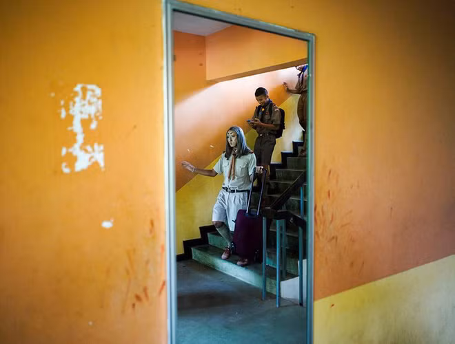 Từ hành lang cho đến cầu thang, đâu đâu cũng nổi bật với bóng dáng thầy.