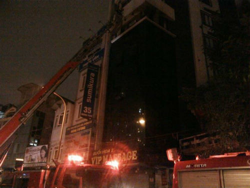 | Chỉ trong vòng 1 giờ, quán massage 7 tầng đã bị thiêu rụi |