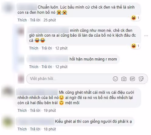 - "Chuẩn luôn. Lúc bầu mình chê chồng đen, sinh con ra đen hơn cả bố".