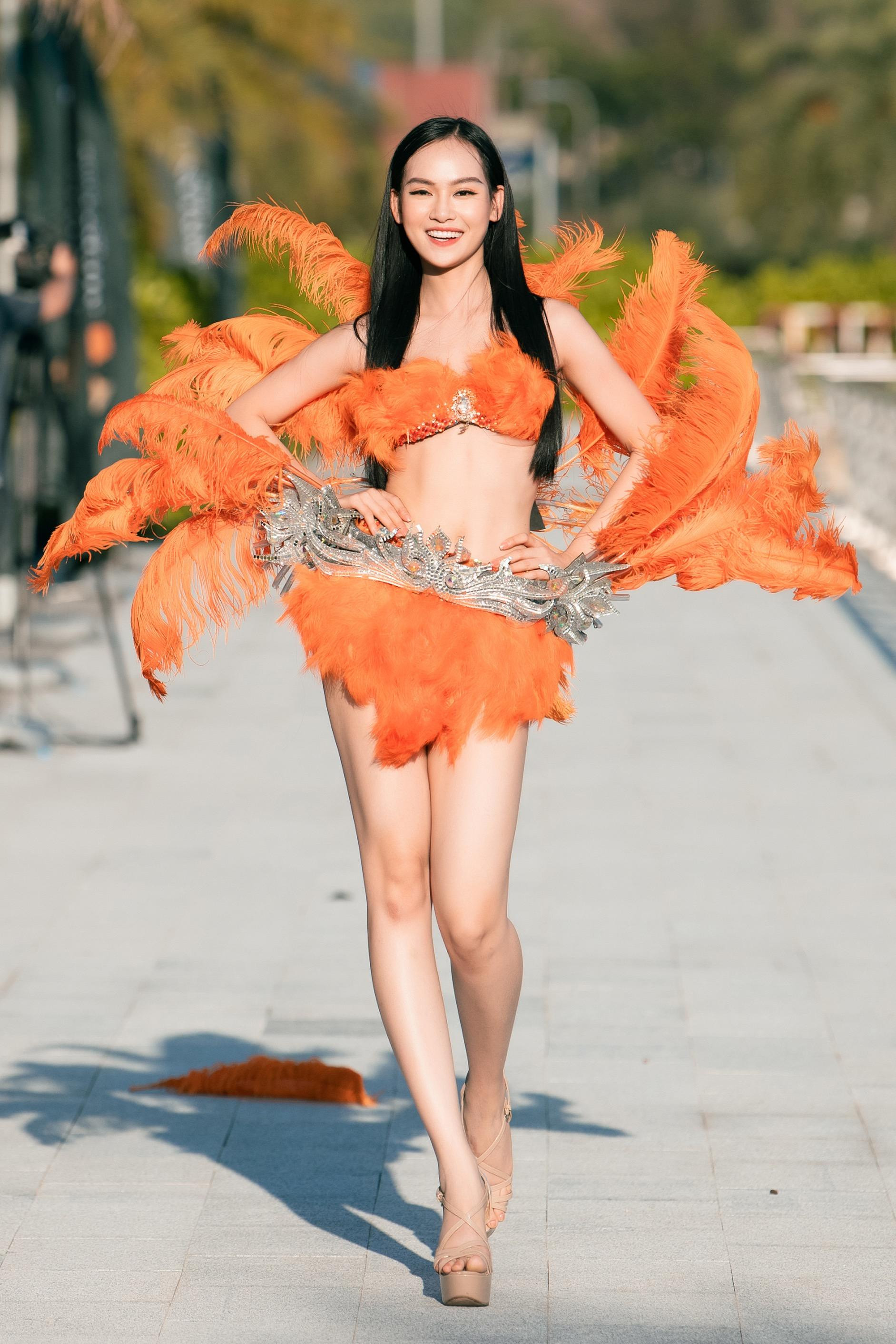 Trong trang phục đến từ Nhà thiết kế Jessica, mỗi bộ cánh là một tác phẩm nghệ thuật với thiết kế đặc sắc, trang hoàng công phu và ấn tượng, mang đậm không khí lễ hội mùa hè. Đây chính xác là cơ hội để các cô gái thể hiện kỹ năng cũng như body sau thời gian dài tập luyện.